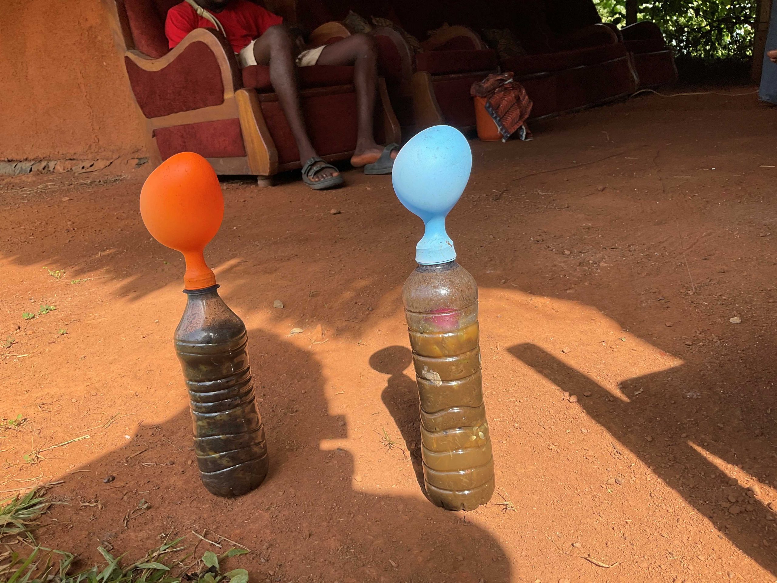 We prepared a simple kids experiment for the group some days before: we filled kitchen waste and a bit garden earth into empty plastic bottles and closed them with balloons. After some days in the warm clima in a shady place the balloons filled with gas!!