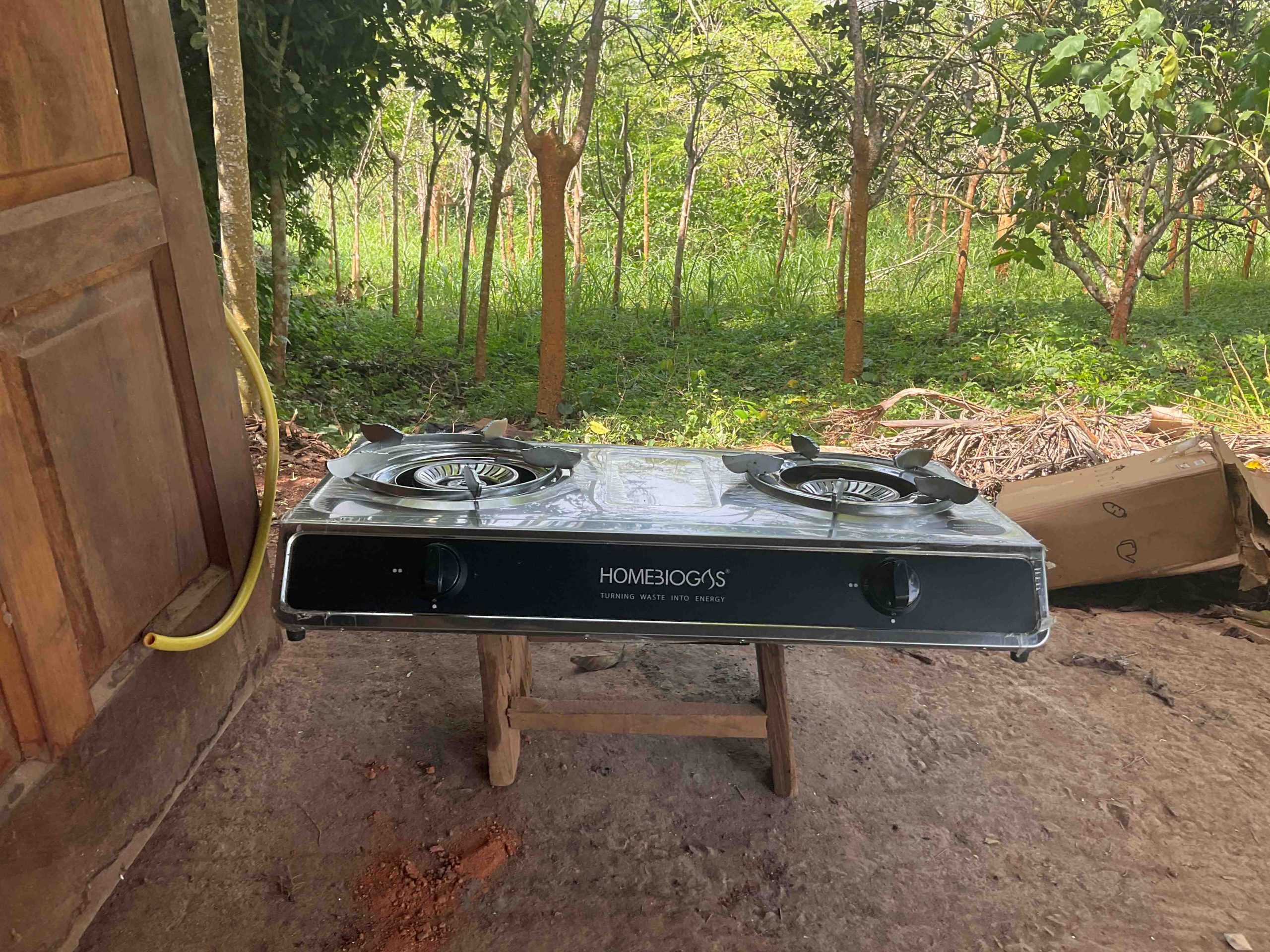 6. connect as well the gas stove with the special yellow pipe with the biogas bag