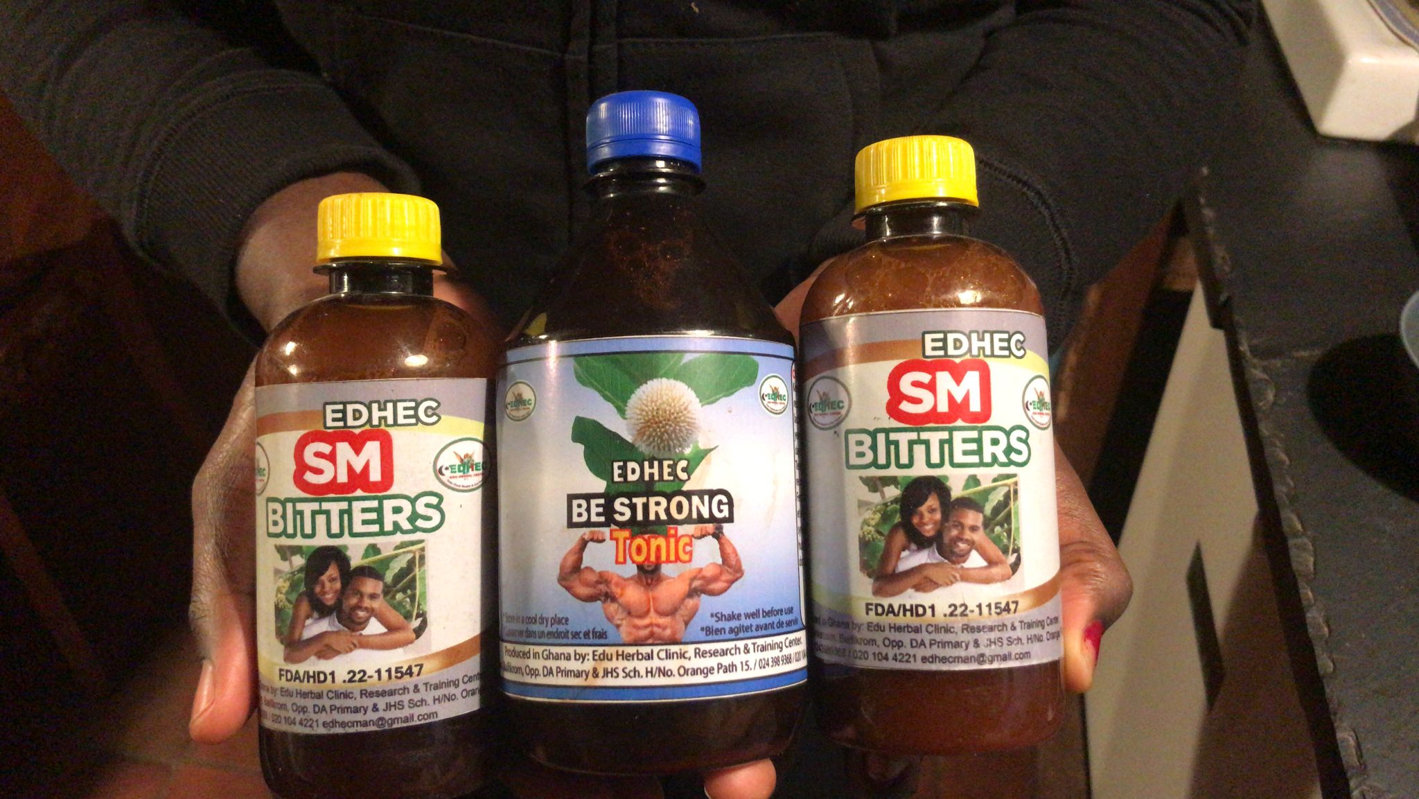 After milling and boiling of 7 different herbs, the BE STRONG tonic is filtered and poured into bottles.
