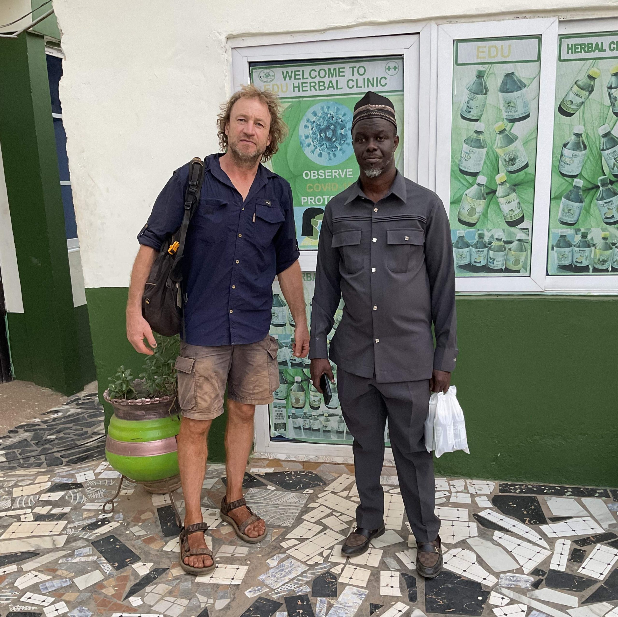 Dr. Edu Muhammad, director and founder of the Edu Herbal Clinic in our neighbour village Baifikrom, explains the principle of his spice mill.