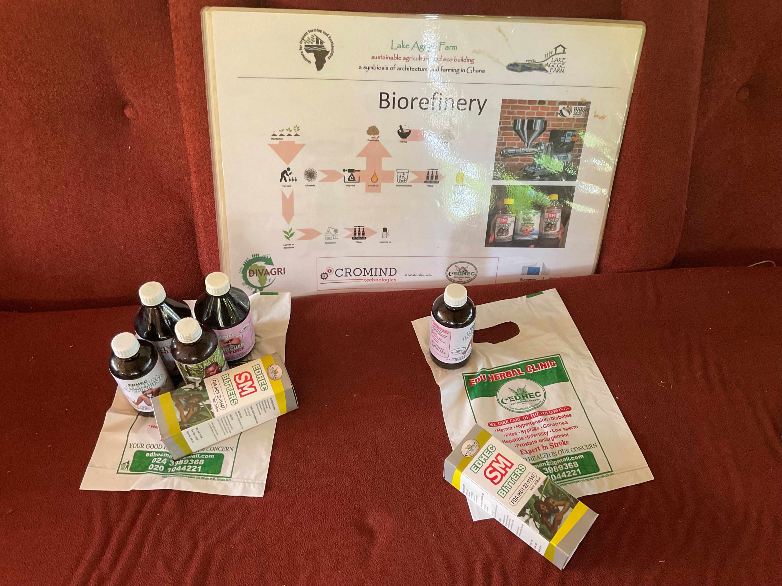 One of our technology steps into the DIVAGRI future is biorefinery. Originally, ethanol was intended to be produced as the end result of a refinery process. We want to align our activities even more deeply with the medical process and have therefore started a cooperation with the EDU HERBAL CLINIC in Baifikrom, which has cross-generational experience in the production of natural essences from local plants and their use. In Ghana, the cultivation of medicinal plants has always been part of the life of small-scale farmers.